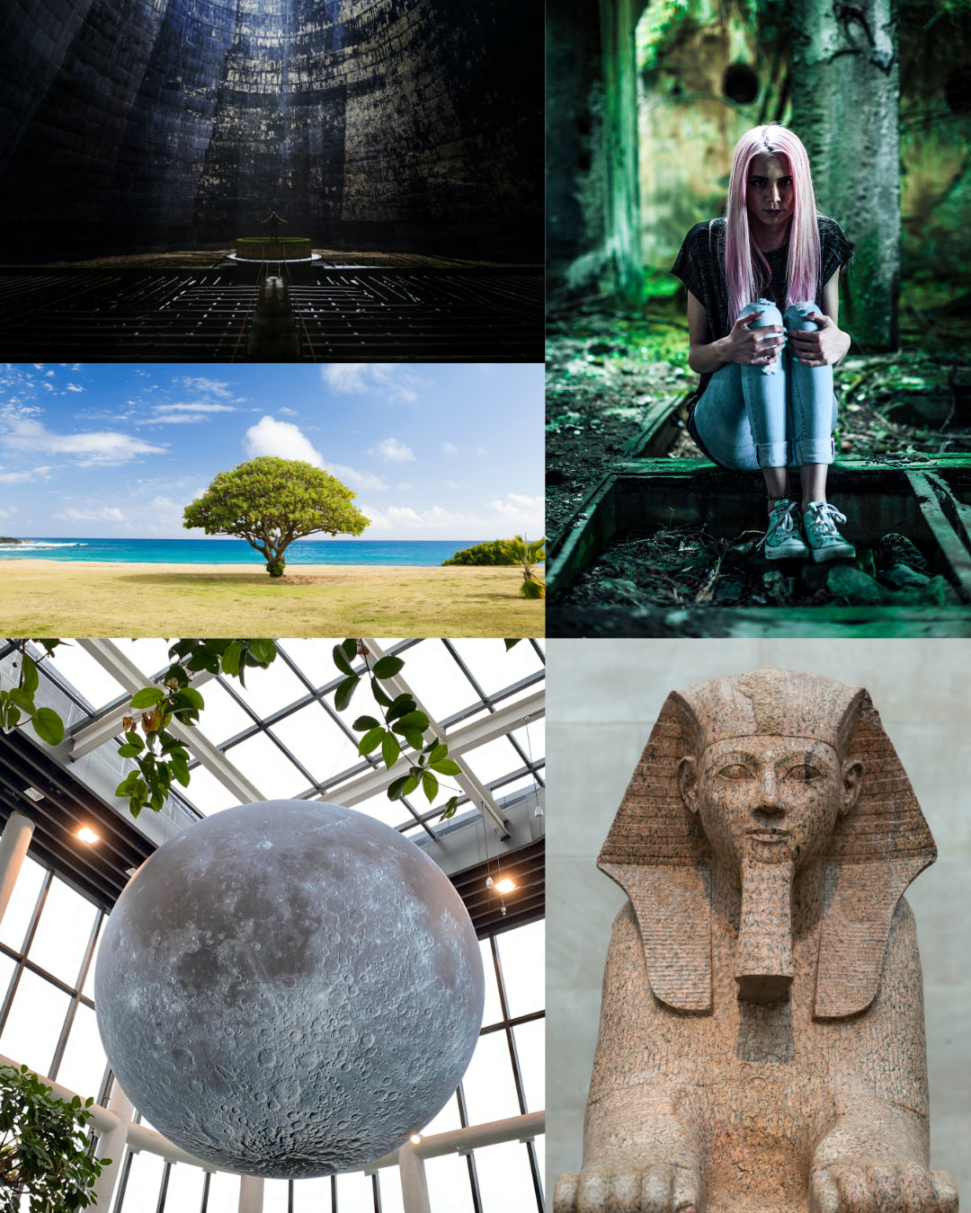 Une conception graphique dans un esprit surréaliste pour évoquer divers sujets tel que le futur de l’humanité, le changement climatique, etc.